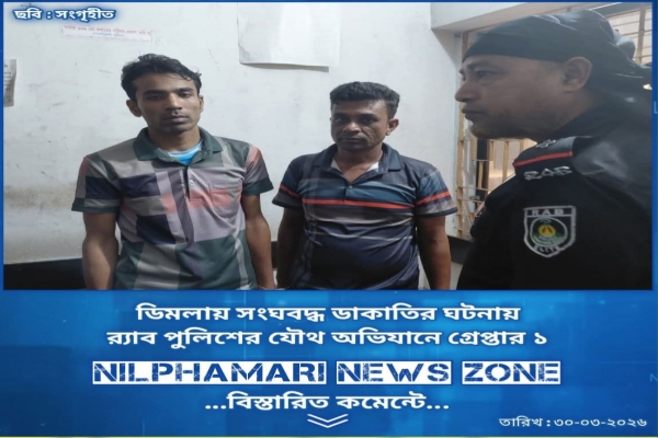 র্যাব পুলিশের যৌথ অভিযানে ডিমলায় সংঘবদ্ধ ডাকাতির ঘটনায় গ্রেপ্তার ১